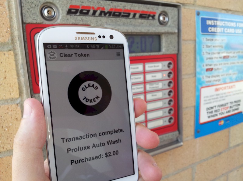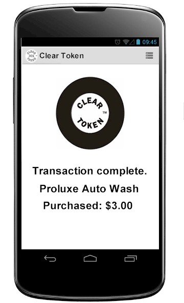 Wash Your Car with Clear Token Our easy to use app is the most convenient way to purchase time at the local car wash. The Clear Token app displays the transaction complete screen as the car wash timer is shown in the background.